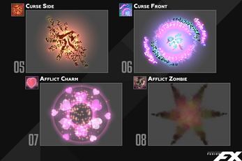 Animations Fusion provides both pre-rendered (spritesheets) and real-time (effekseer) versions of the same handcrafted, quality VFX that Dreams Circle has been known to provide. True to its name, Animations Fusion mixes the legacy of our "Animations Collection/Select" family with the aesthetic style of our "EVFX" family of assets.